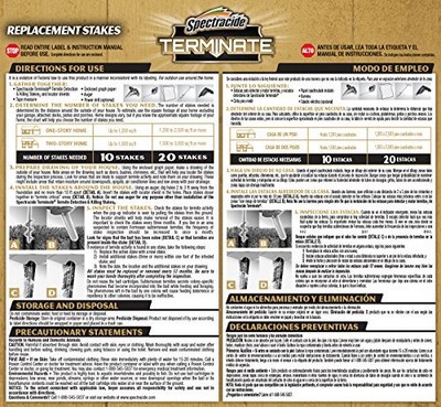 Installation of the Spectracide Terminate® Termite Detection & Killing Stakes 2. 5. Look for signs that the bait has been eaten (DETAIL C) or that termites are present inside the stake REPLACEMENT STAKES TERMINATE ® TERMITE DETECTION & KILLING STAKES 2 ... Access Doc